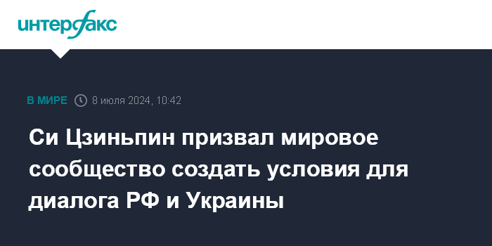 Москва. 8 июля. INTERFAX.RU - Председатель КНР Си Цзиньпин в понедельник на встрече с венгерским премьером Виктором Орбаном заявил о необходимости создания условий для диалога между Россией и Украиной.
