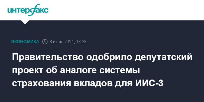 Москва. 8 июля. INTERFAX.RU - Правительственная комиссия по законопроектной деятельности на заседании в понедельник одобрила проект отзыва правительства на законопроект о создании системы возмещения стоимости имущества на индивидуальных инвестиционных счетах третьего типа (ИИС-3), сообщил "Интерфаксу" источник, знакомый с работой правкомиссии.