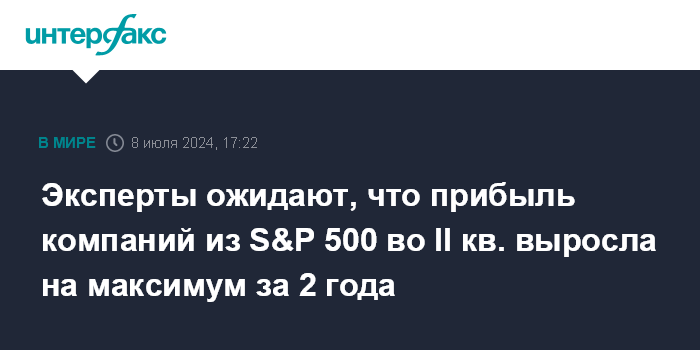 Эксперты ожидают, что прибыль компаний из S&P 500 во II кв. выросла на максимум за 2 года