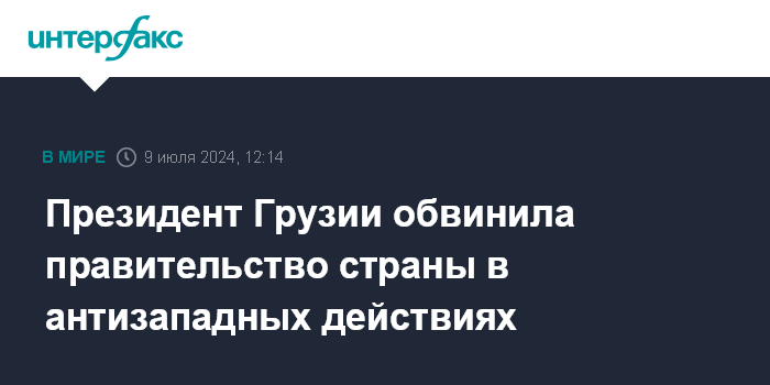 Президент Грузии обвинила правительство страны в антизападных действиях