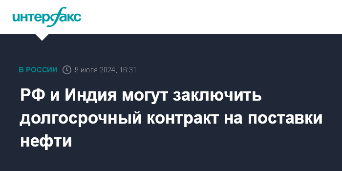 Москва. 9 июля. INTERFAX.RU - Россия и Индия обсуждают возможность заключения долгосрочного соглашения на поставки нефти, сообщил журналистам вице-премьер РФ Александр Новак.