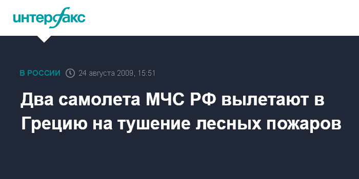 Москва. 24 августа. INTERFAX.RU - МЧС России окажет помощь Греции в тушении лесных пожаров.