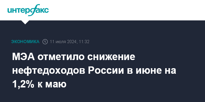 МЭА отметило снижение нефтедоходов России в июне на 1,2% к маю