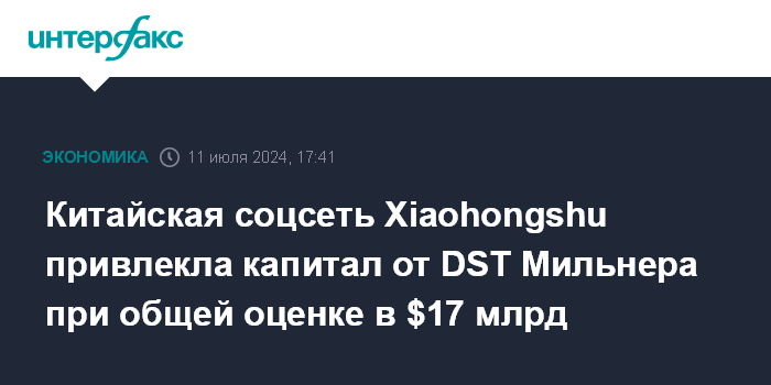 Москва. 11 июля. INTERFAX.RU - Китайская соцсеть Xiaohongshu, также известная как Little Red Book, привлекла средства от венчурного фонда DST Global Юрия Мильнера при общей оценке в $17 млрд. Об этом пишет Financial Times со ссылкой на осведомленные источники.