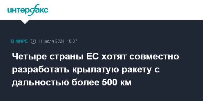 "На полях саммита НАТО в Вашингтоне Польша, Франция, Германия и Италия подписали письмо о намерениях по совместной разработке крылатой ракеты с дальностью более 500 км", - говорится в сообщении.
