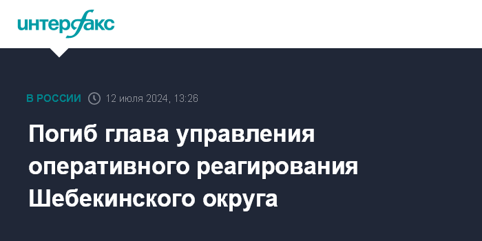 Москва. 12 июля. INTERFAX.RU - Белгородский губернатор Вячеслав Гладков сообщил о гибели начальника управления оперативного реагирования Шебекинского городского округа Александра Маслиенко.