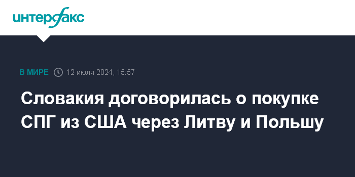 Москва. 12 июля. INTERFAX.RU - Компания ZSE (работает на рынке через дочерние ZSE Energia и Vychodoslovenska energetika) - второй по величине поставщик природного газа в Словакии – договорилась о покупке для страны СПГ через Литву и Польшу.