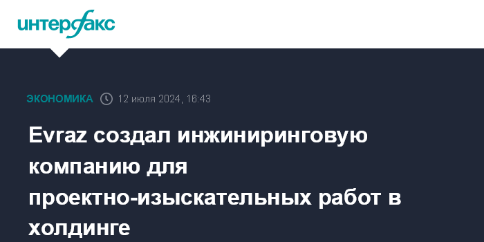 Москва. 12 июля. INTERFAX.RU - Evraz создал инжиниринговую компанию для проведения проектно-изыскательных работ в холдинге.