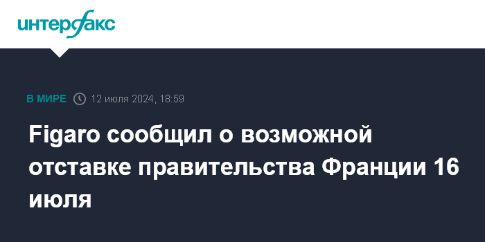 Figaro сообщил о возможной отставке правительства Франции 16 июля