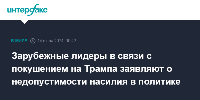 Зарубежные лидеры в связи с покушением на Трампа заявляют о недопустимости насилия в политике