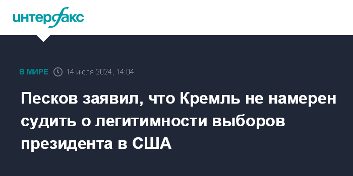 Песков заявил, что Кремль не намерен судить о легитимности выборов президента в США