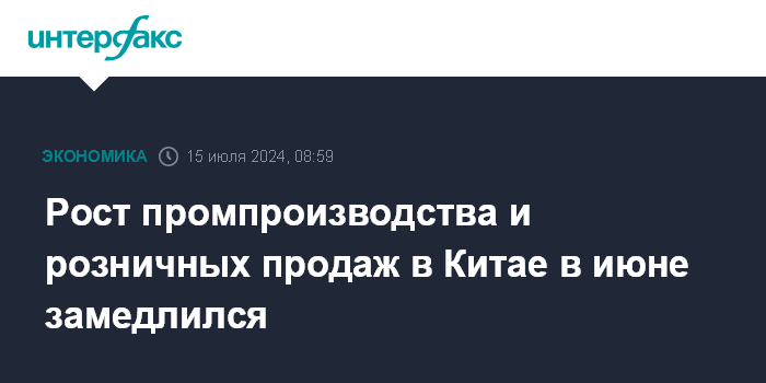 Рост промпроизводства и розничных продаж в Китае в июне замедлился