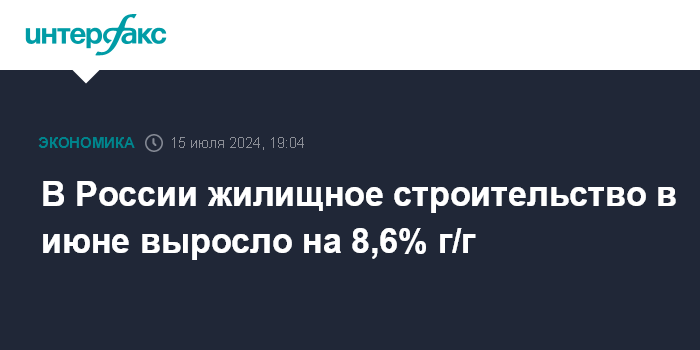 В России жилищное строительство в июне выросло на 8,6% г/г