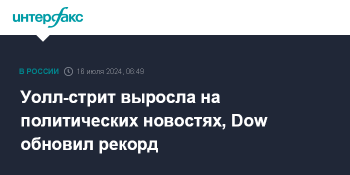 Уолл-стрит выросла на политических новостях, Dow обновил рекорд