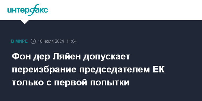 Фон дер Ляйен допускает переизбрание председателем ЕК только с первой попытки