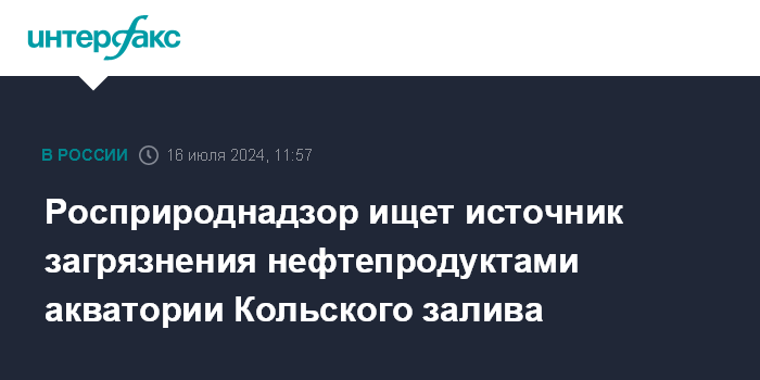 Москва. 16 июля. INTERFAX.RU - В Мурманске на берегу и в акватории Кольского залива обнаружили загрязнение нефтепродуктами, сообщает Балтийско-Арктическое межрегиональное управление Росприроднадзора.