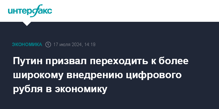 Москва. 17 июля. INTERFAX.RU - Платформа цифрового рубля Банка России в рамках пилота показала свою работоспособность, пора переходить к его более широкому применению, заявил президент Владимир Путин в ходе совещания по экономическим вопросам в среду.