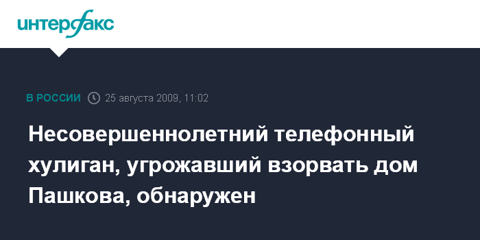 Несовершеннолетний телефонный хулиган, угрожавший взорвать дом Пашкова, обнаружен