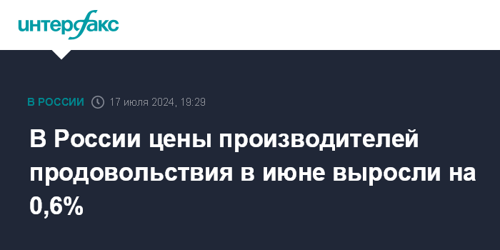 В России цены производителей продовольствия в июне выросли на 0,6%