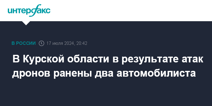 Москва. 17 июля. INTERFAX.RU - В Суджанском районе Курской области в результате атак дронов ранены два человека, сообщил врио губернатора региона Алексей Смирнов.
