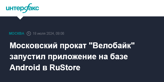 Москва. 18 июля. INTERFAX.RU - У московского сервиса проката "Велобайк" появилось приложение для пользователей смартфонов, работающих на операционной системе Android, в сетевом магазине приложений RuStore, сообщили "Интерфаксу" в пресс-службе столичного Департамента транспорта.
