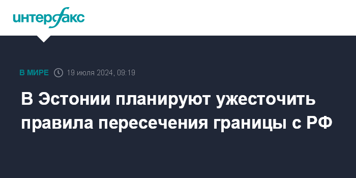 Москва. 19 июля. INTERFAX.RU - Министерство финансов Эстонии направило в правительство план дальнейшего ужесточения правил пересечения границы с Россией.