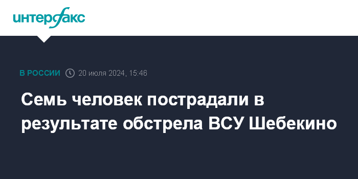 Москва. 20 июля. INTERFAX.RU - Губернатор Белгородской области Вячеслав Гладков сообщил о семи пострадавших жителях Шебекино при обстреле ВСУ.