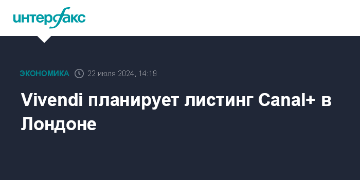 Москва. 22 июля. INTERFAX.RU - Французский медиаконгломерат Vivendi планирует листинг своего подразделения Canal+, которому после разделения конгломерата достанутся телевизионные активы, на бирже в Лондоне, сообщает Vivendi .