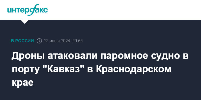 Москва. 22 июля. INTERFAX.RU - Губернатор Краснодарского края Вениамин Кондратьев во вторник сообщил об атаке беспилотниками паромного судна в порту "Кавказ" в Темрюкском районе, есть погибший и пострадавшие.