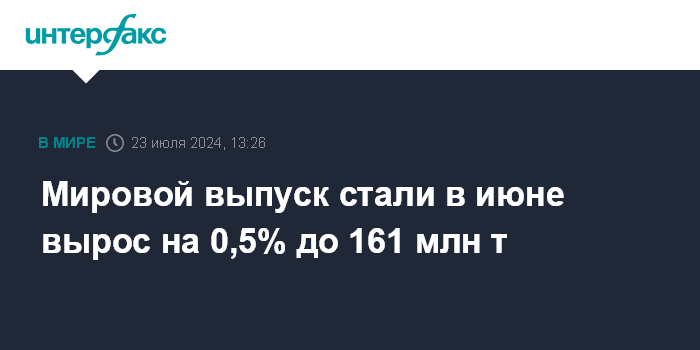 Мировой выпуск стали в июне вырос на 0,5% до 161 млн т