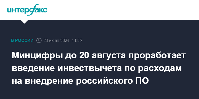 Минцифры до 20 августа проработает введение инвествычета по расходам на внедрение российского ПО