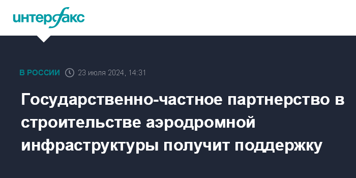 Москва. 23 июля. INTERFAX.RU - Государственно-частное партнерство будет поддерживаться в строительстве аэродромной инфраструктуры аэропортов, заявил глава правительства РФ Михаил Мишустин.