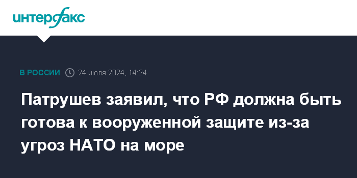 Патрушев заявил, что РФ должна быть готова к вооруженной защите из-за угроз НАТО на море