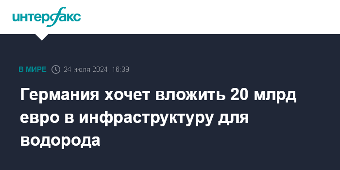 Германия хочет вложить 20 млрд евро в инфраструктуру для водорода