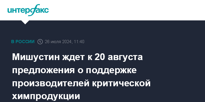 Мишустин ждет к 20 августа предложения о поддержке производителей критической химпродукции