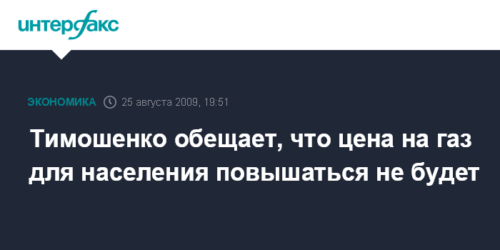 Ривне. 25 августа. INTERFAX.RU - Цена на природный газ для населения повышаться не будет, заявила премьер-министр Украины Юлия Тимошенко.