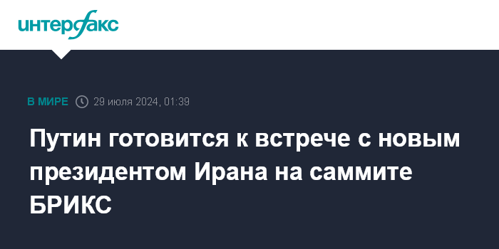 Путин готовится к встрече с новым президентом Ирана на саммите БРИКС