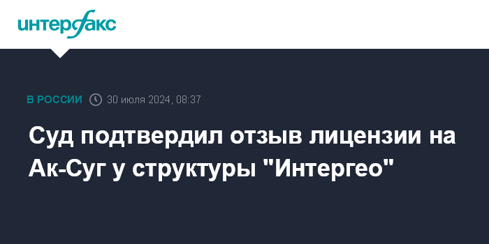 Суд подтвердил отзыв лицензии на Ак-Суг у структуры "Интергео"