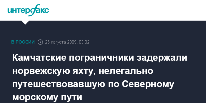 Петропавловск-Камчатский. 26 августа. ИНТЕРФАКС-ДАЛЬНИЙ ВОСТОК - Яхту "RX-2" под норвежским флагом задержали пограничники ПСКР "Нева" СВПУ береговой охраны ФСБ России 24 августа.