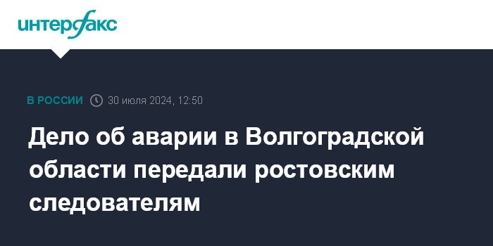 Дело об аварии в Волгоградской области передали ростовским следователям