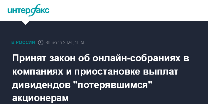 Принят закон об онлайн-собраниях в компаниях и приостановке выплат дивидендов "потерявшимся" акционерам