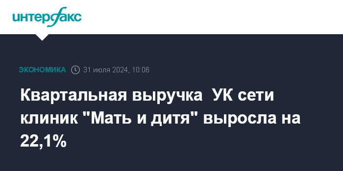 Квартальная выручка УК сети клиник "Мать и дитя" выросла на 22,1%