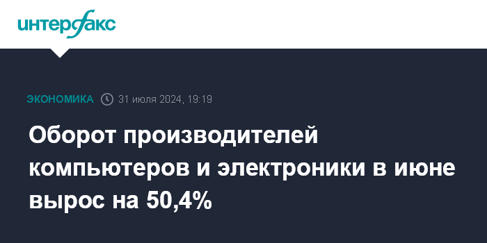 Оборот производителей компьютеров и электроники в июне вырос на 50,4%
