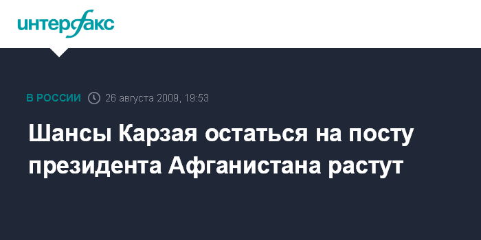 Лондон. 26 августа. INTERFAX.RU - Действующий президент Афганистана Хамид Каразй сохраняет лидирующие позиции среди кандидатов на пост президента страны после подсчета 17% голосов, сообщает BBC.
