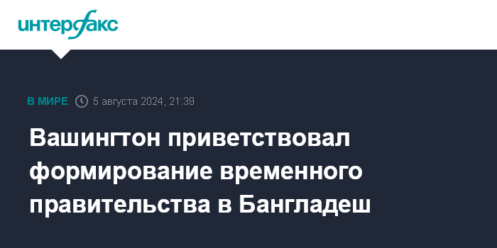 Москва. 5 августа. INTERFAX.RU - Администрация США приветствует заявление о формировании временного правительства Бангладеш и призывают все стороны к сдержанности, заявил на брифинге представитель Госдепартамента Мэтью Миллер.