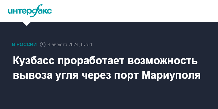Москва. 6 августа. INTERFAX.RU - Врио губернатора Кемеровской области Илья Середюк поручил региональным Минугля и Минтранспорта проработать с угольными компаниями Кузбасса возможность отправки продукции через порт Мариуполь (ДНР), сообщает пресс-служба правительства региона.
