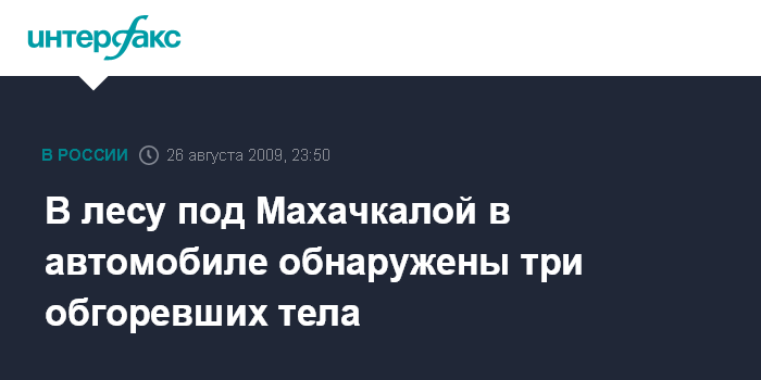 Ростов-на-Дону. 26 августа. ИНТЕРФАКС-ЮГ - Легковая автомашина, в которой находились обгоревшие тела троих человек, обнаружена в Карабудахкентском районе Дагестана.