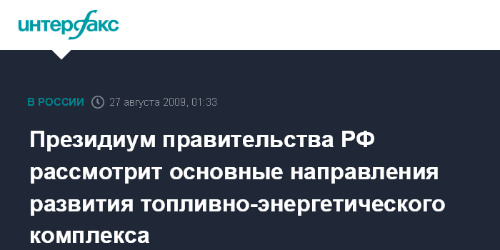 Президиум правительства РФ рассмотрит основные направления развития топливно-энергетического комплекса