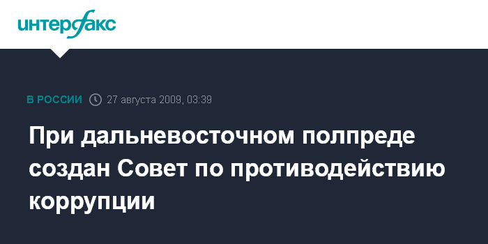 "Предполагается, что первое заседание Совета по противодействию коррупции при полномочном представителе президента РФ на Дальнем Востоке состоится осенью 2009 года", - отметил собеседник агентства.