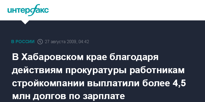 В Хабаровском крае благодаря действиям прокуратуры работникам стройкомпании выплатили более 4,5 млн долгов по зарплате